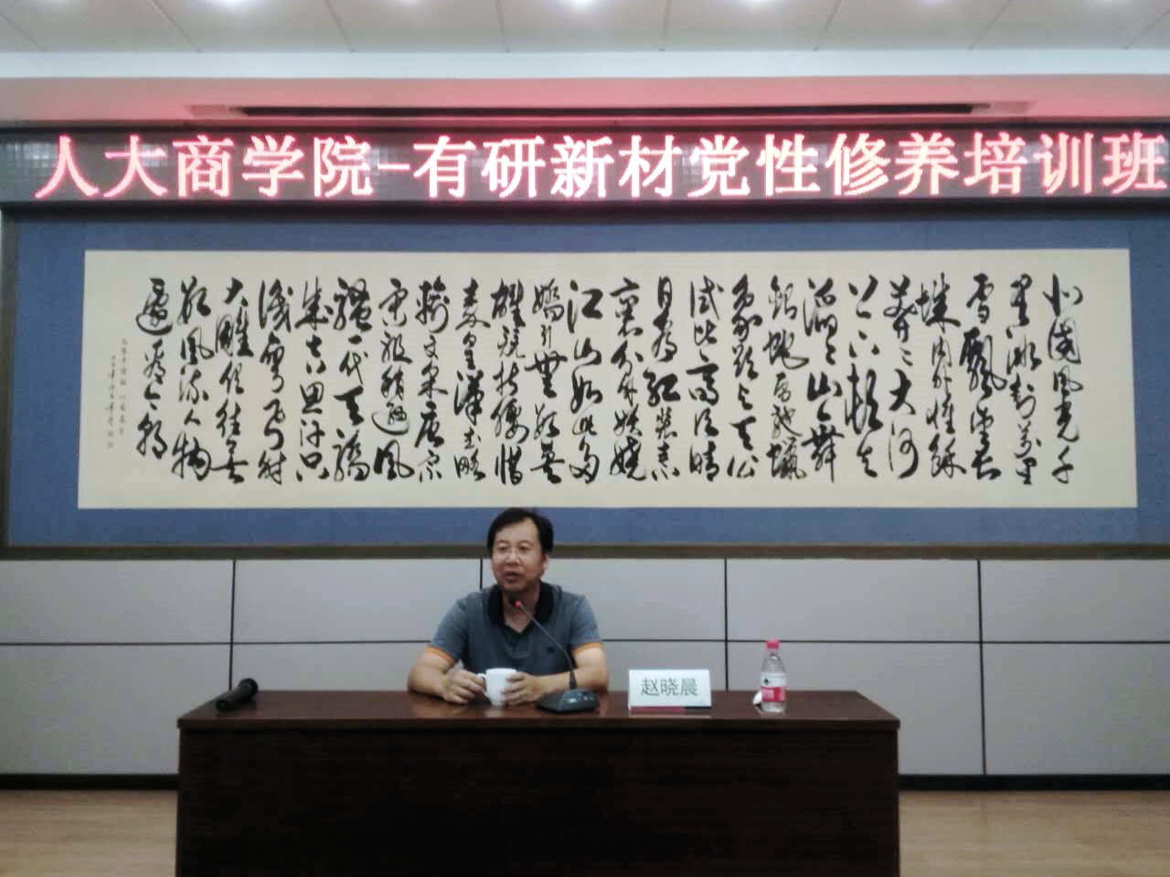 8月7日晚,總院趙曉晨書記來到人大商學院有研新材黨性修養培訓班現場,親切看望正在接受培訓的全體學員,參加了分組討論,聽取了各小組的討論心得匯報,并對此次培訓班的組織安排工作給予了充分肯定。