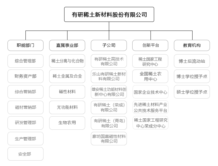 有研稀土新材料股份有限公司(簡(jiǎn)稱有研稀土)是2001年由中國(guó)有研科技集團(tuán)有限公司(原北京有色金屬研究總院)作為主發(fā)起人對(duì)稀土國(guó)家工程研究中心經(jīng)營(yíng)性資產(chǎn)進(jìn)行改制而設(shè)立的股份公司,是國(guó)家高新技術(shù)企業(yè)。其前身1952年開始稀土研究,是我國(guó)最早從事稀土研究開發(fā)的單位之一, 也是我國(guó)稀土工業(yè)技術(shù)的主要發(fā)源地。
