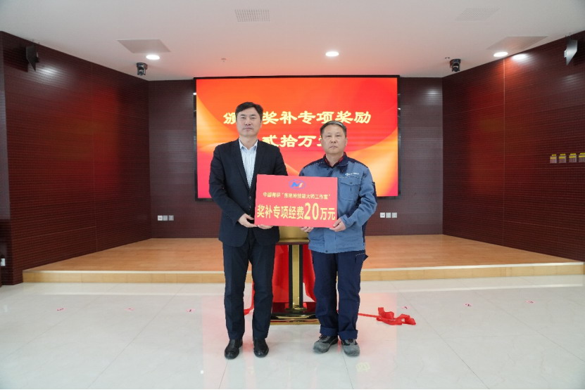 王興權(quán)為技能大師工作室頒發(fā)獎(jiǎng)補(bǔ)專項(xiàng)獎(jiǎng)勵(lì)。