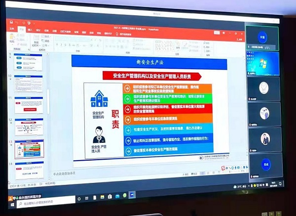 召開安全工作會議層層壓實責任。9月30日上午,有研稀土燕郊、樂山、榮成、青島四基地同步連線召開安全工作會議,公司高管、各部門及子公司負責人、安全管理人員、車間主任等70余人參加了會議。公司副總經理王志強傳達了有研集團有關情況通報及國慶期間安全防范工作精神,安全部負責人對新《安全生產法》進行專題宣貫。
