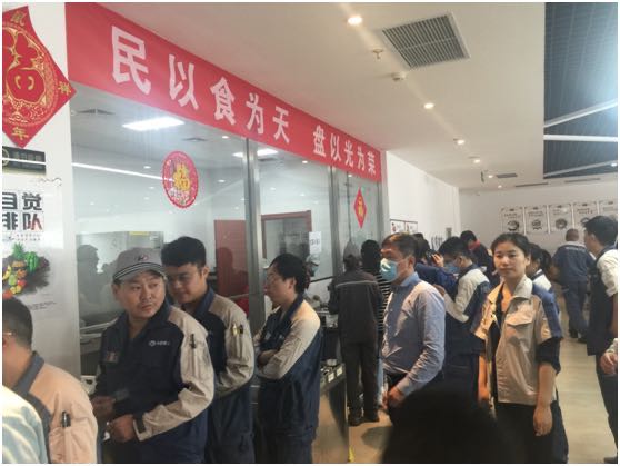 劉慧舟書記在食堂現場監督檢查員工就餐情況