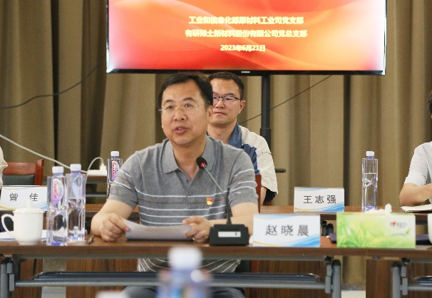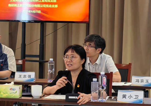 為深入學習貫徹習近平新時代中國特色社會主義思想和黨的二十大精神,全面落實習近平總書記關于推動稀土產業發展的重要指示精神,共謀稀土行業綠色可持續發展,6月21日,工業和信息化部原材料工業司黨支部聯合有研稀土新材料股份有限公司黨總支在燕郊基地開展“聯學聯建共奮進、黨建引領促發展”活動。工信部原材料工業司司長陳克龍,副司長馮猛、張海登,中國有研黨委書記、董事長趙曉晨,首席科學家、中國工程院院士黃小衛,黨委委員、副總經理周旗鋼出席活動。中國有研黨委副書記王興權主持活動。