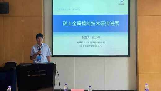 會議設置了稀有金屬綠色選礦、稀有金屬綠色冶金、稀土綠色冶金與材料制備、稀有金屬材料與加工、高純稀有金屬及靶材、稀有金屬固廢資源化與環境保護等六個專題的分會場。稀土國家工程研究中心、有研稀土新材料股份有限公司、雄安稀土功能材料創新中心10余名專家、學者、研究生參加了會議。有研稀土副總經理馮宗玉擔任大會秘書長、稀土綠色冶金與材料制備分會場主席,副總經理王志強擔任高純稀有金屬及靶材分會場主席,正高級工程師王猛擔任稀土綠色冶金與材料制備專題會場主持人,正高級工程師張小偉擔任高純稀有金屬及靶材專題會場主持人,王猛、張小偉、李錚分別作了題為“硫酸體系碳酸氫鎂皂化萃取分離稀土過程中鈣元素的定向遷移與調控”“稀土金屬提純技術研究進展”“離子型稀土礦硫酸鎂浸取過程鋁的賦存形態轉變機理研究”的分會邀請報告。