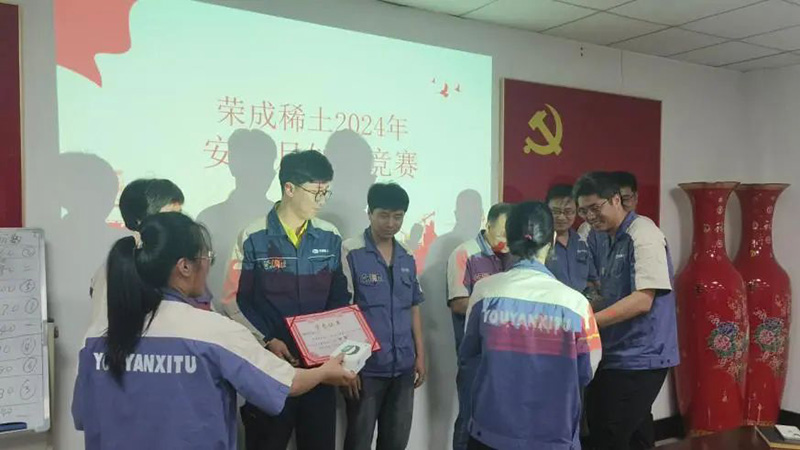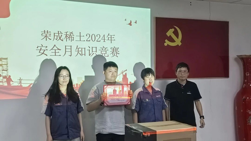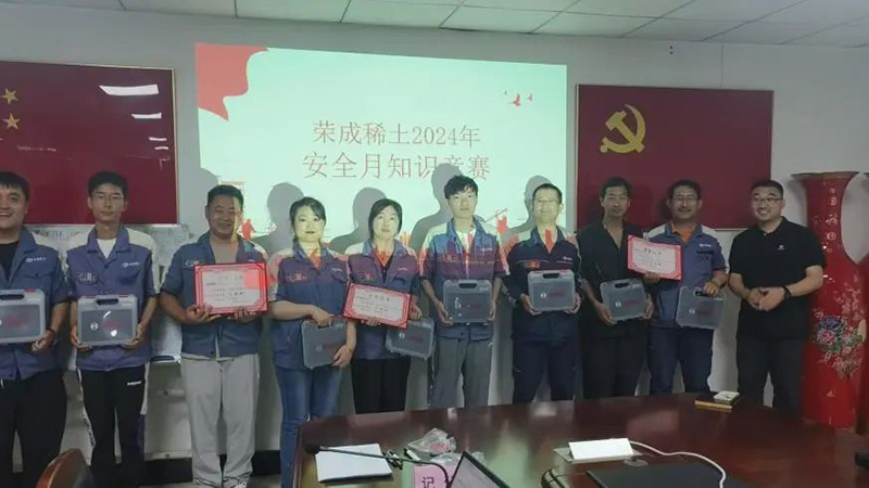 在第23個全國“安全生產月”期間,榮成稀土于2024年6月28日組織了安全知識競賽活動,緊扣“人人講安全、個個會應急--暢通生命通道”主題,進一步提升企業員工的安全生產意識,增強應對突發安全事故的能力。榮成稀土黨支部書記羅陽出席活動,并為獲獎代表隊頒獎。