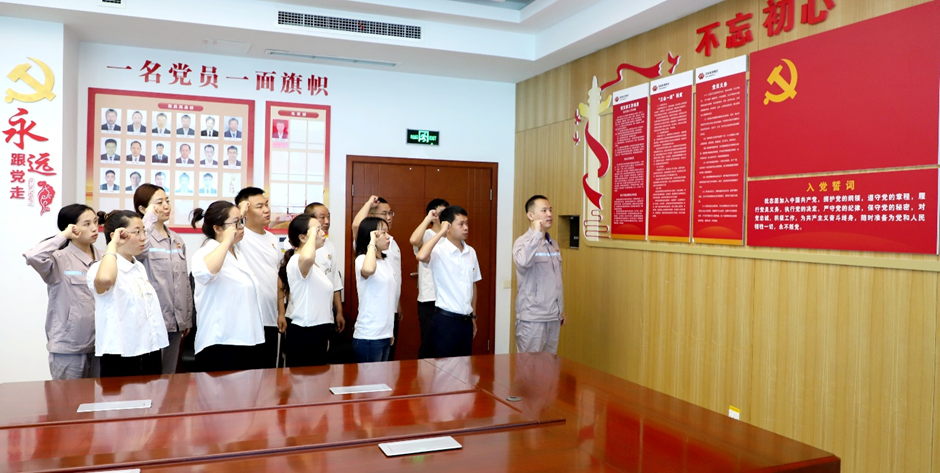 在會(huì)議室,國能大渡河沙坪發(fā)電有限公司黨群辦公室負(fù)責(zé)同志重點(diǎn)介紹了黨建引領(lǐng)業(yè)務(wù)發(fā)展的特色經(jīng)驗(yàn),通過黨建與主題教育、群團(tuán)工作、作風(fēng)紀(jì)律建設(shè)相融合,將黨建工作融入工程建設(shè)、技術(shù)創(chuàng)新、團(tuán)隊(duì)管理等各個(gè)環(huán)節(jié),實(shí)現(xiàn)黨建與業(yè)務(wù)同頻共振。樂山稀土黨支部黨員干部深受啟發(fā),雙方就如何創(chuàng)新黨建活動(dòng)形式、提升黨員隊(duì)伍凝聚力、推動(dòng)黨建與業(yè)務(wù)深度融合等問題展開討論。座談會(huì)結(jié)束后,與會(huì)全體黨員面向黨旗,莊嚴(yán)宣誓,重溫入黨誓詞,表達(dá)了對(duì)黨的堅(jiān)定信念和為黨的事業(yè)奮斗終身的決心。